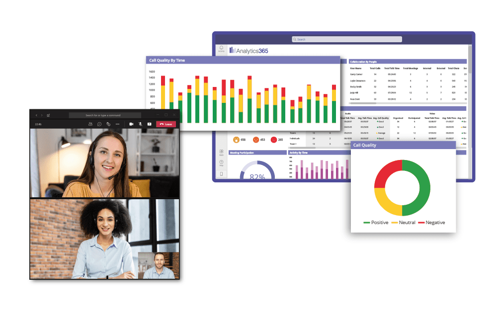 Analytics 365 is a native app for Microsoft Teams, where you can focus on staff wellbeing and motivation to drive excellent customer engagement. Individuals can review their own collaboration analytics and managers can supervise multiple teams with ease.