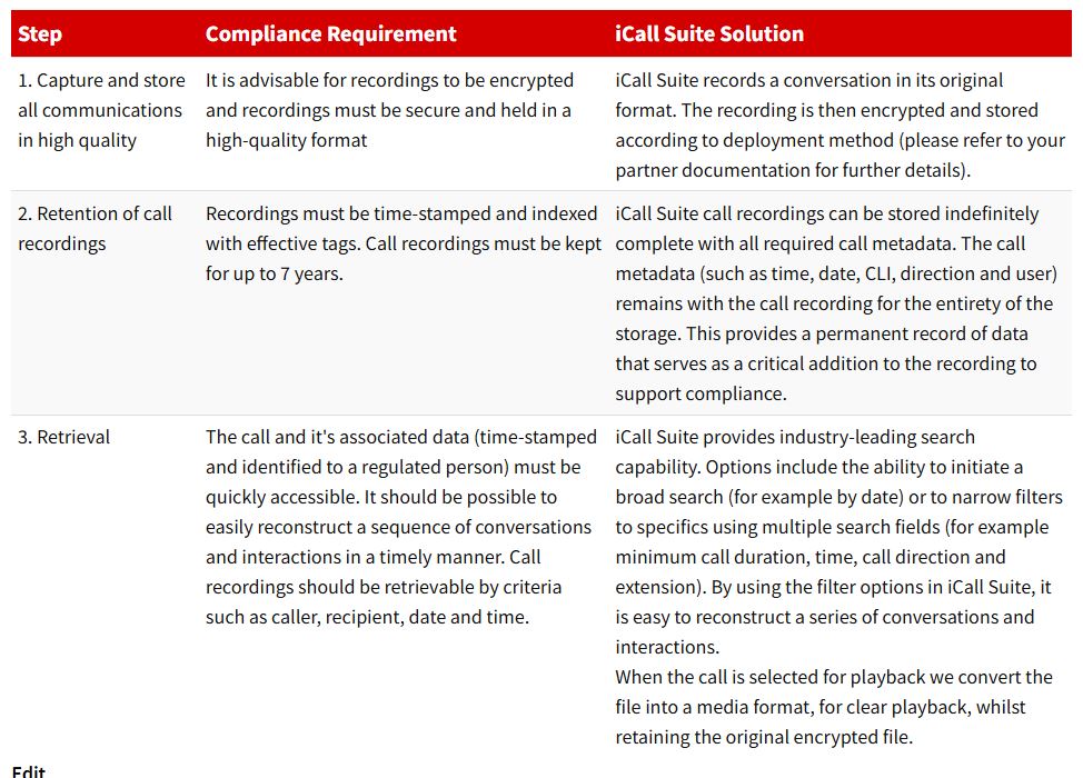 iCall Suite can facilitate MiFID II compliance through the following steps: